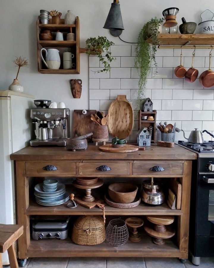 Small appliances stored in units.