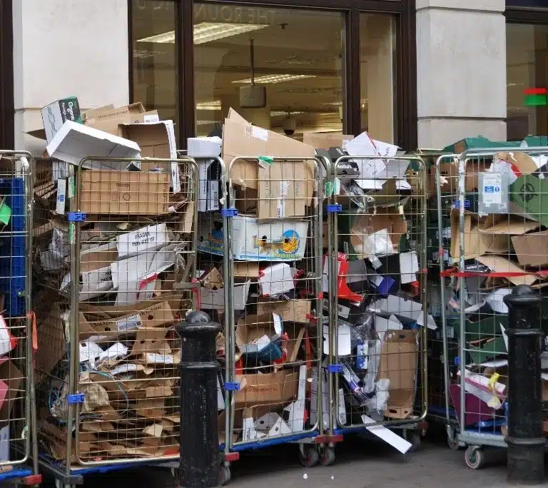 Bins filled with unneeded items.