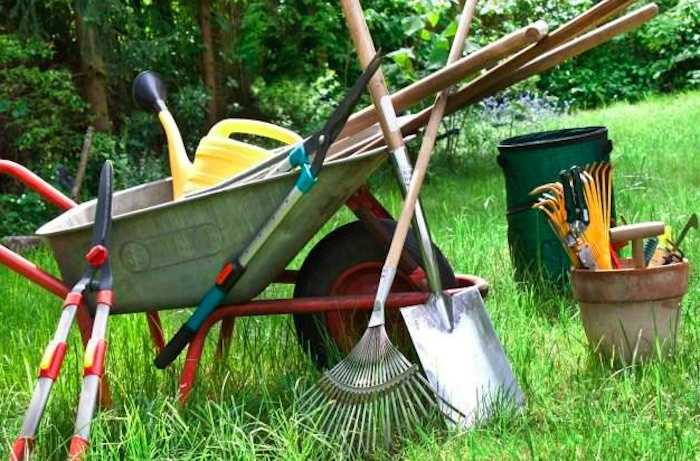 Old or broken tools cluttering the garage.