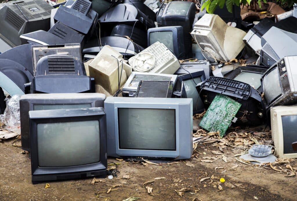 Old computers, printers, and other devices.