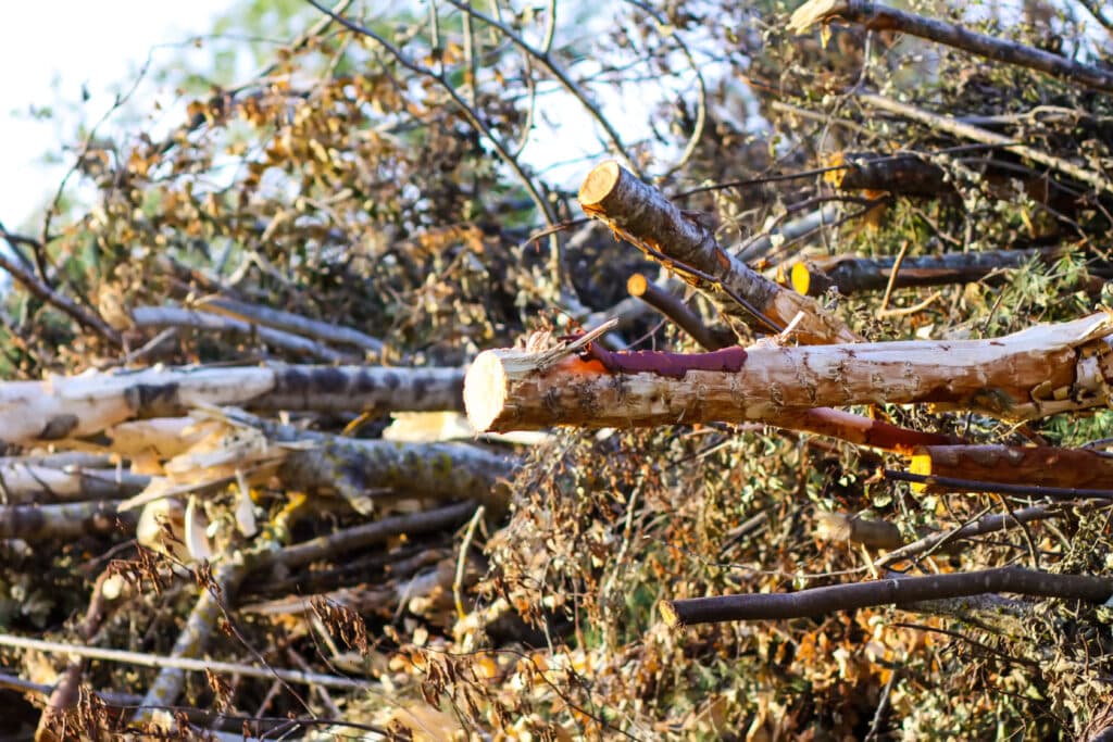 Leaves, branches, and garden waste from the property.